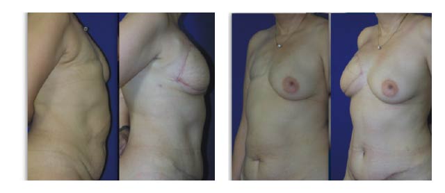 • La reconstrucción autologa, es decir con su propio tejido, tomando el tejido del abdomen para reconstruir la nueva mama. También puede realizarse por medio de múltiples lipoinyecciones, extrayendo la grase de cualquier otra parte del cuerpo y así ir formando poco a poco la mama.